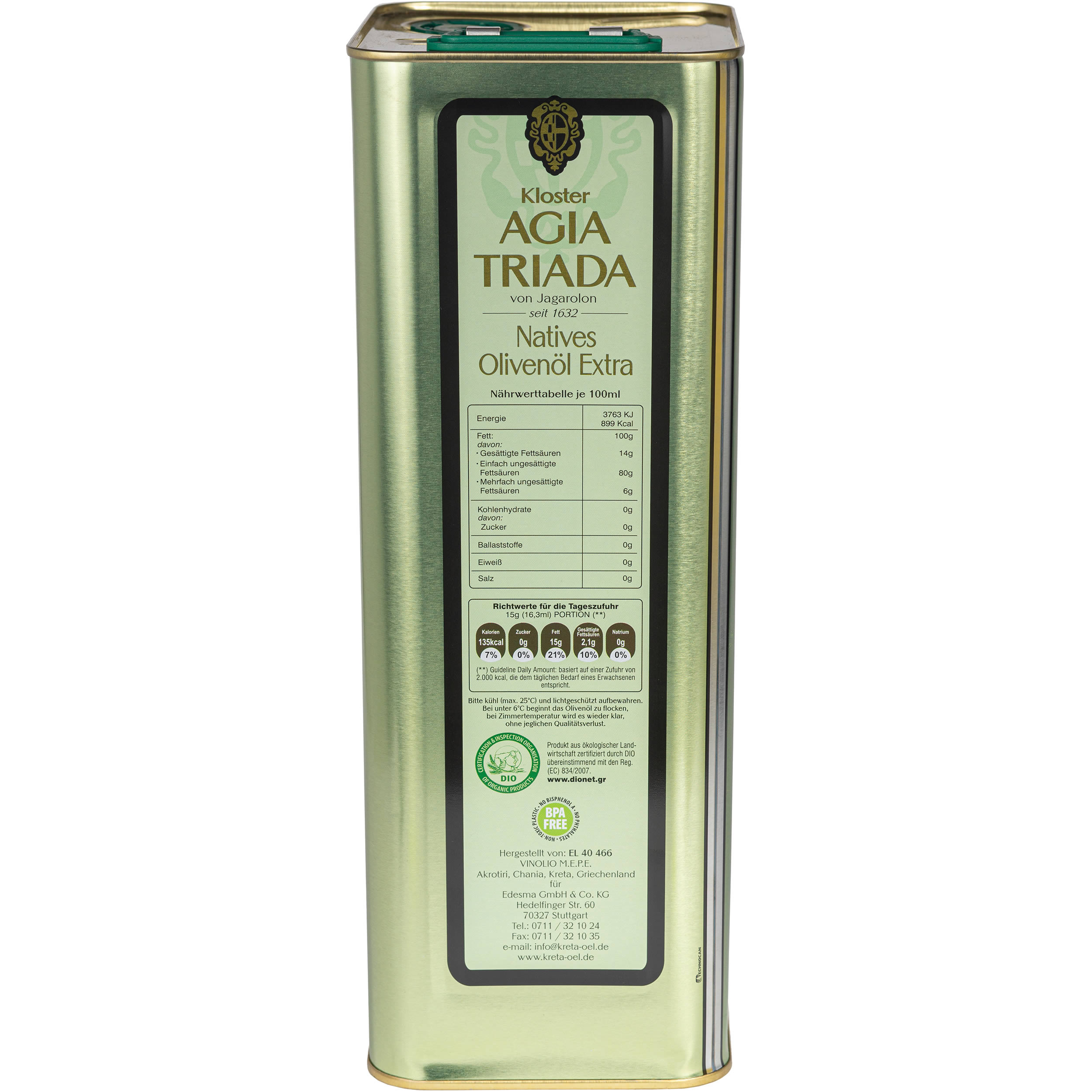 Produktinformationen "Agia Triada BIO - Extra natives Olivenöl 5 l"