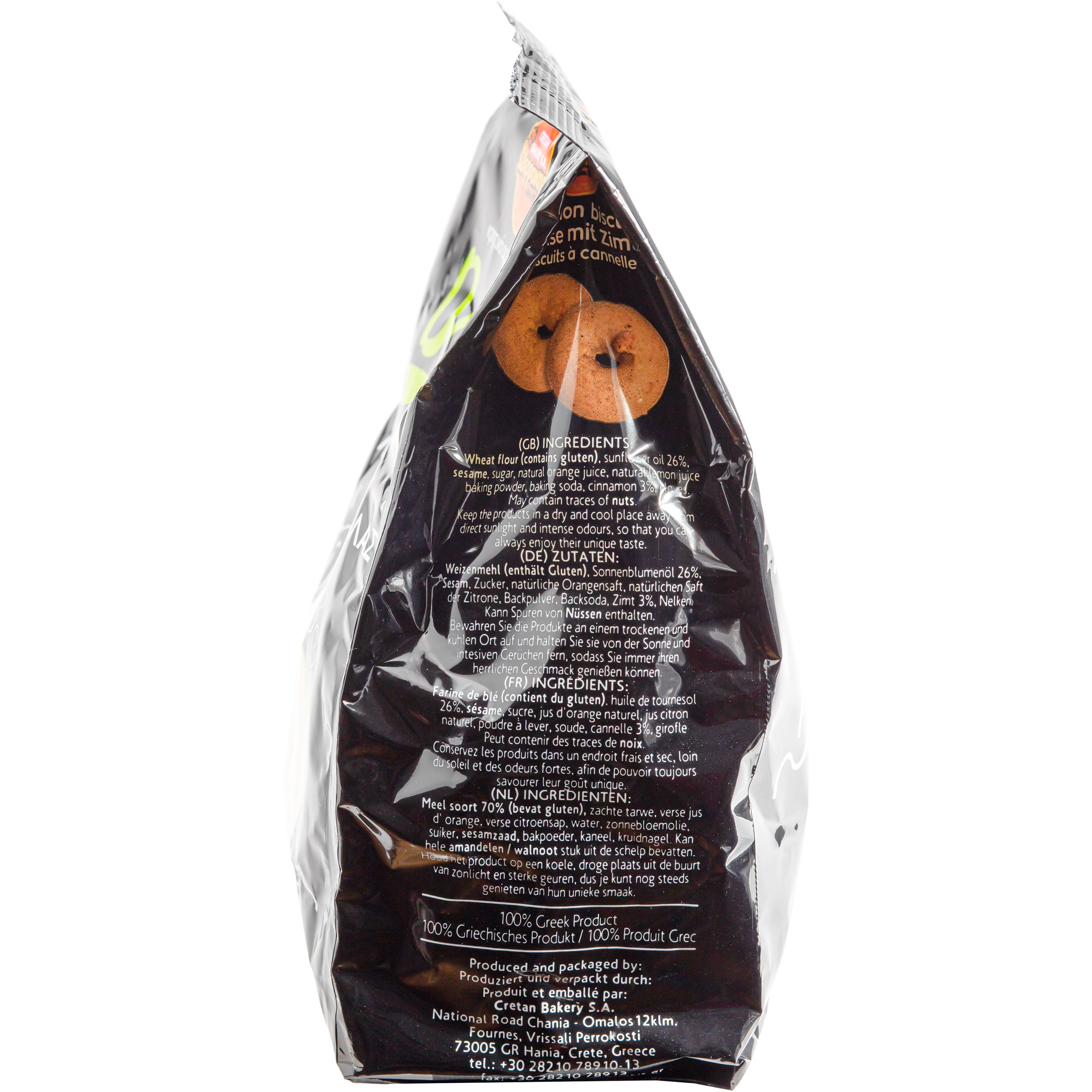 Weizenmehl, Sonnenblumenöl (26%), Sesam, Zucker, natürlicher Orangensaft, natürlicher Zitronensaft, Backpulver, Backsoda, Zimt (3%), Nelken