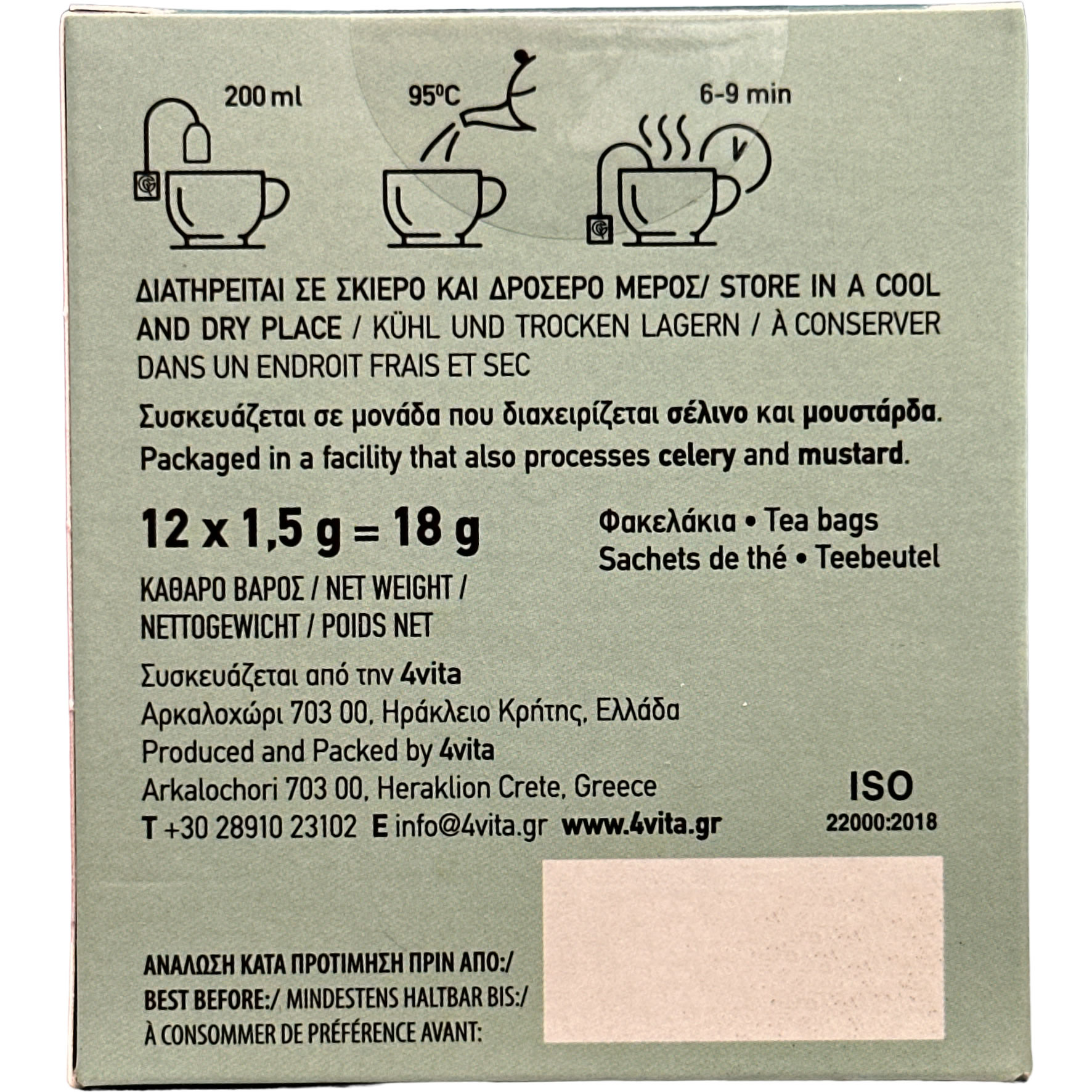 | Hersteller | 4vita Cretan Herbs, Verikokidis Vaggelis, Arkalochori 70300 Heraklion, Kreta, Griechenland, Telefon: +30 28910-23102, E-Mail: vaggelis.verikokidis@gmail.com |