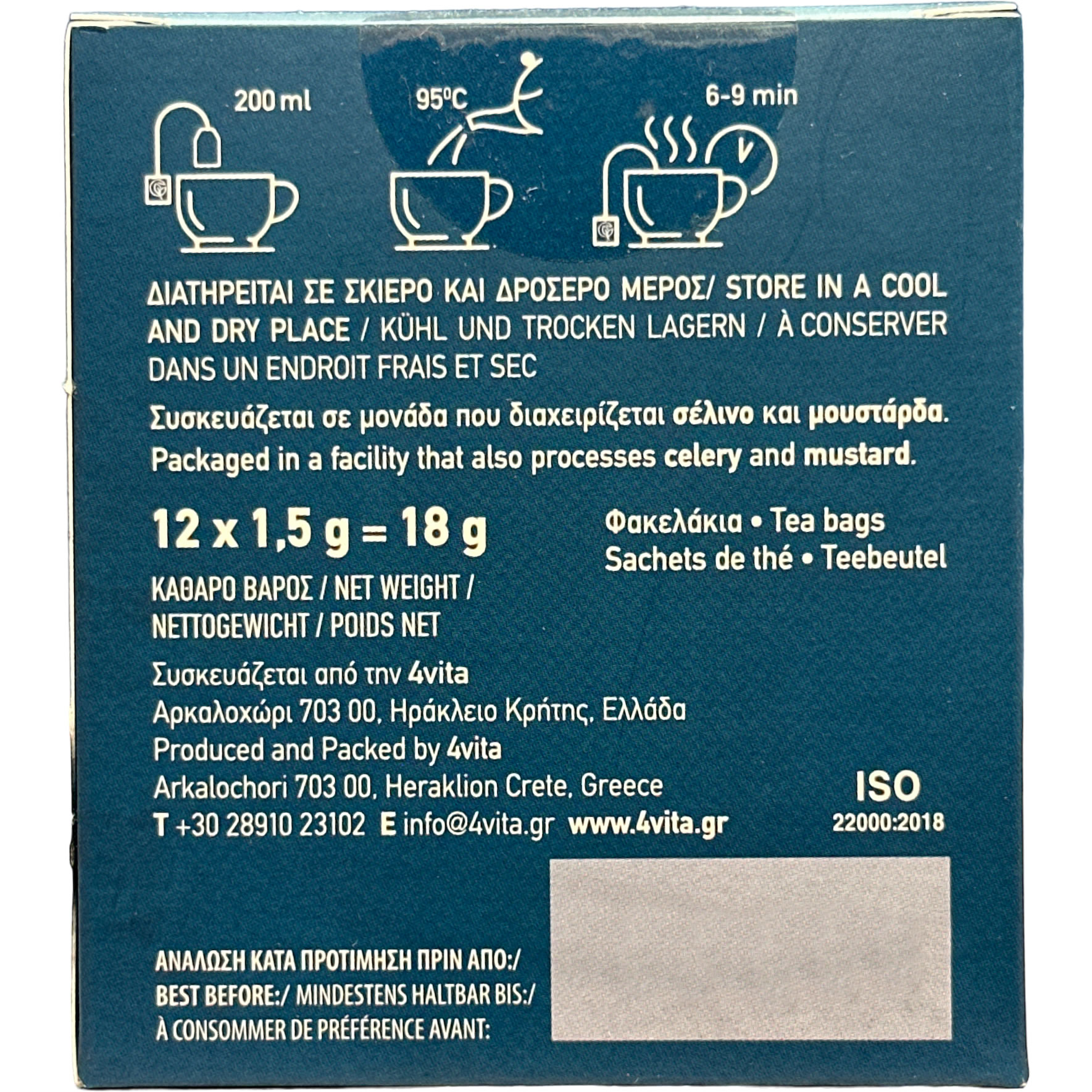 | Hersteller | 4vita Cretan Herbs, Verikokidis Vaggelis, Arkalochori 70300 Heraklion, Kreta, Griechenland, Telefon: +30 28910-23102, E-Mail: vaggelis.verikokidis@gmail.com |